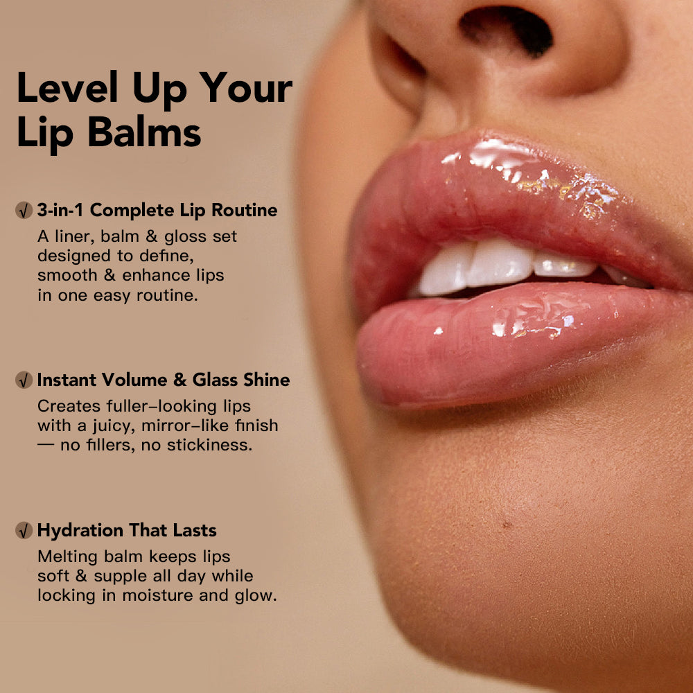 Lip Volume Hack Trio is a three-step lip enhancement set designed to create fuller-looking, glossy lips with minimal effort. The kit includes: