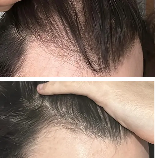 - Scalp shows more coverage
